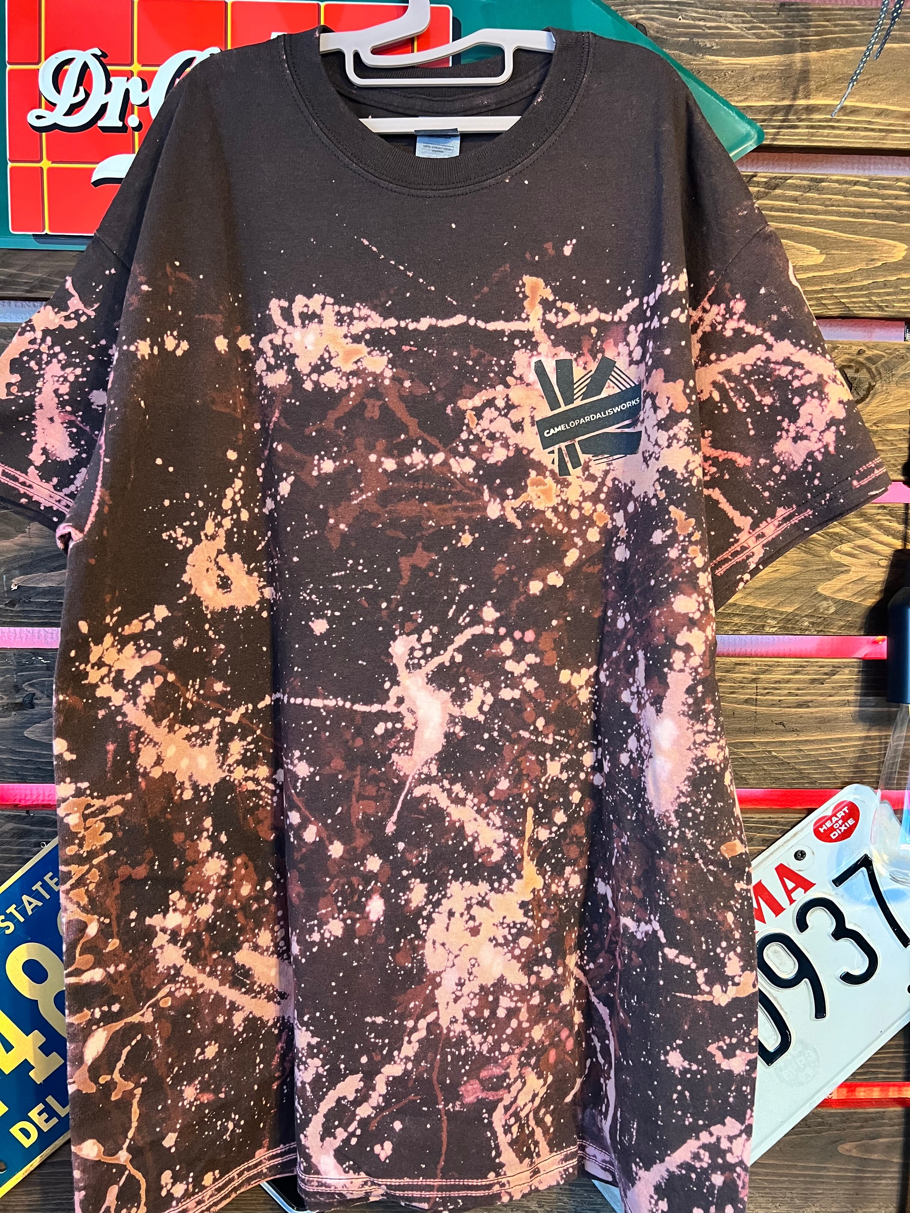 コチラのTシャツは1枚1枚手作業でプリントし、ブリーチ加工を施しました。