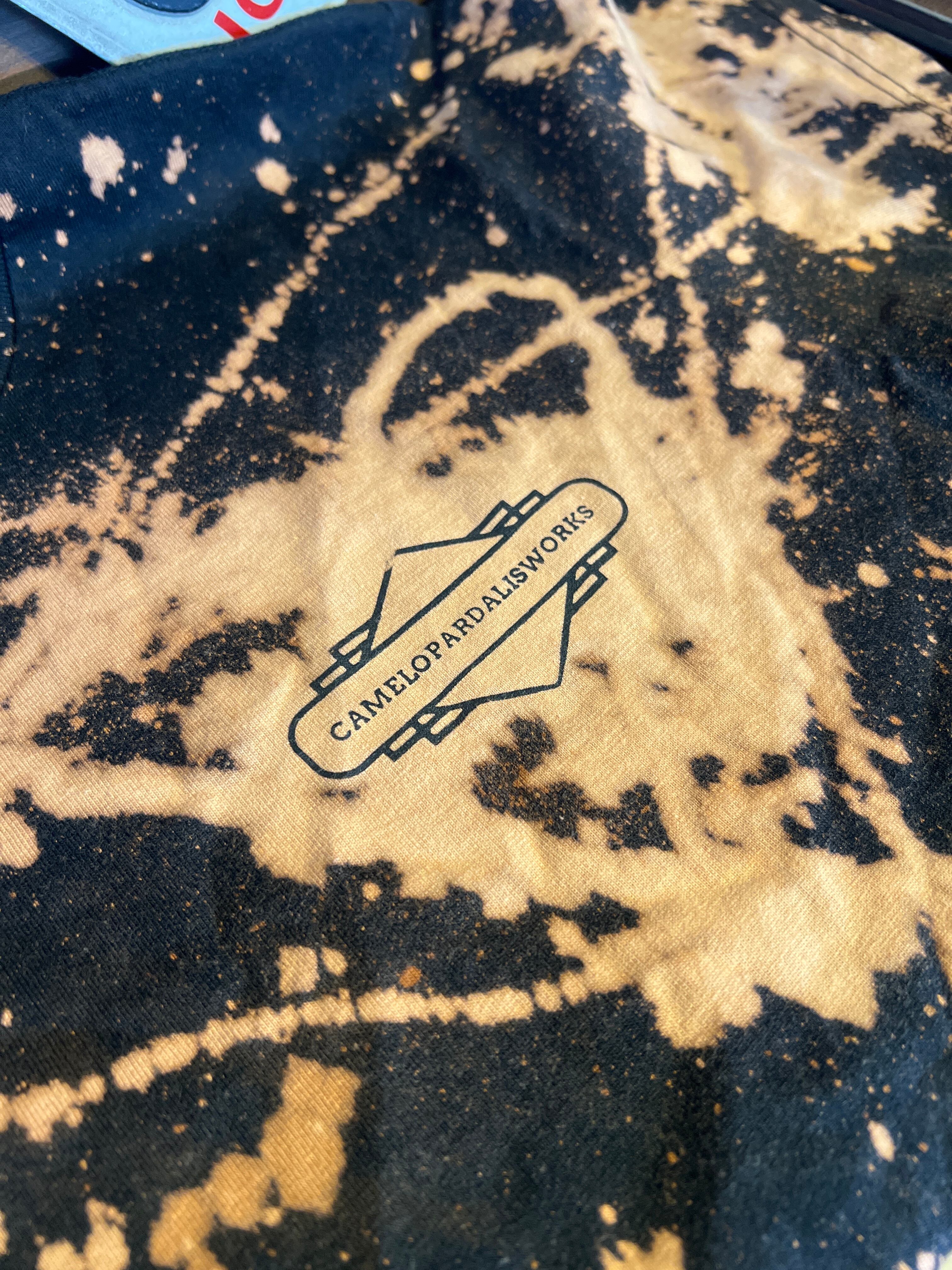 コチラのTシャツは1枚1枚手作業でプリントし、ブリーチ加工を施しました。