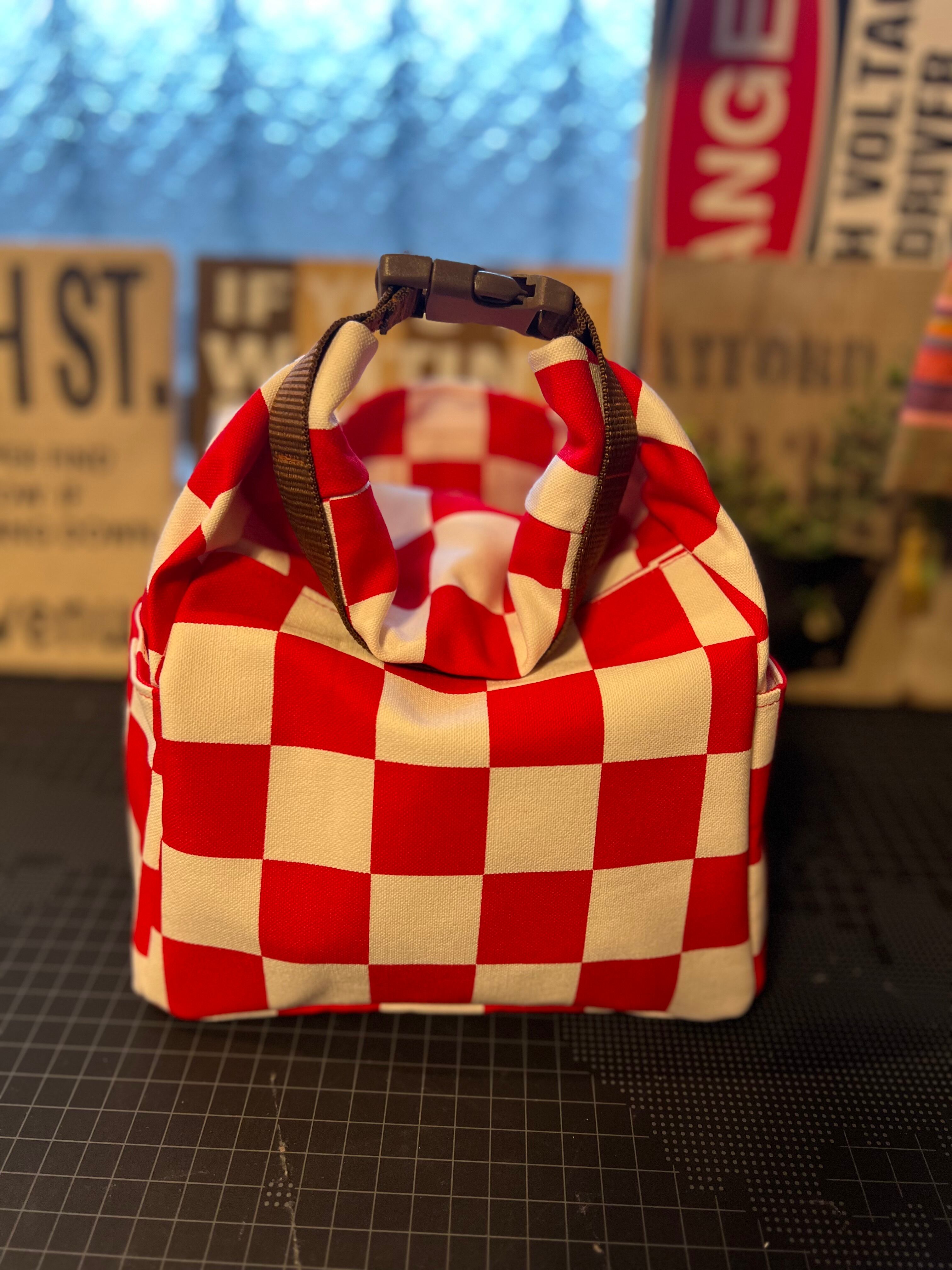 ビビットなレッドとホワイトのブロックチェックに差し色のブラウンでストリート風のイメージで作りました。アメカジ好きはきっと好き。